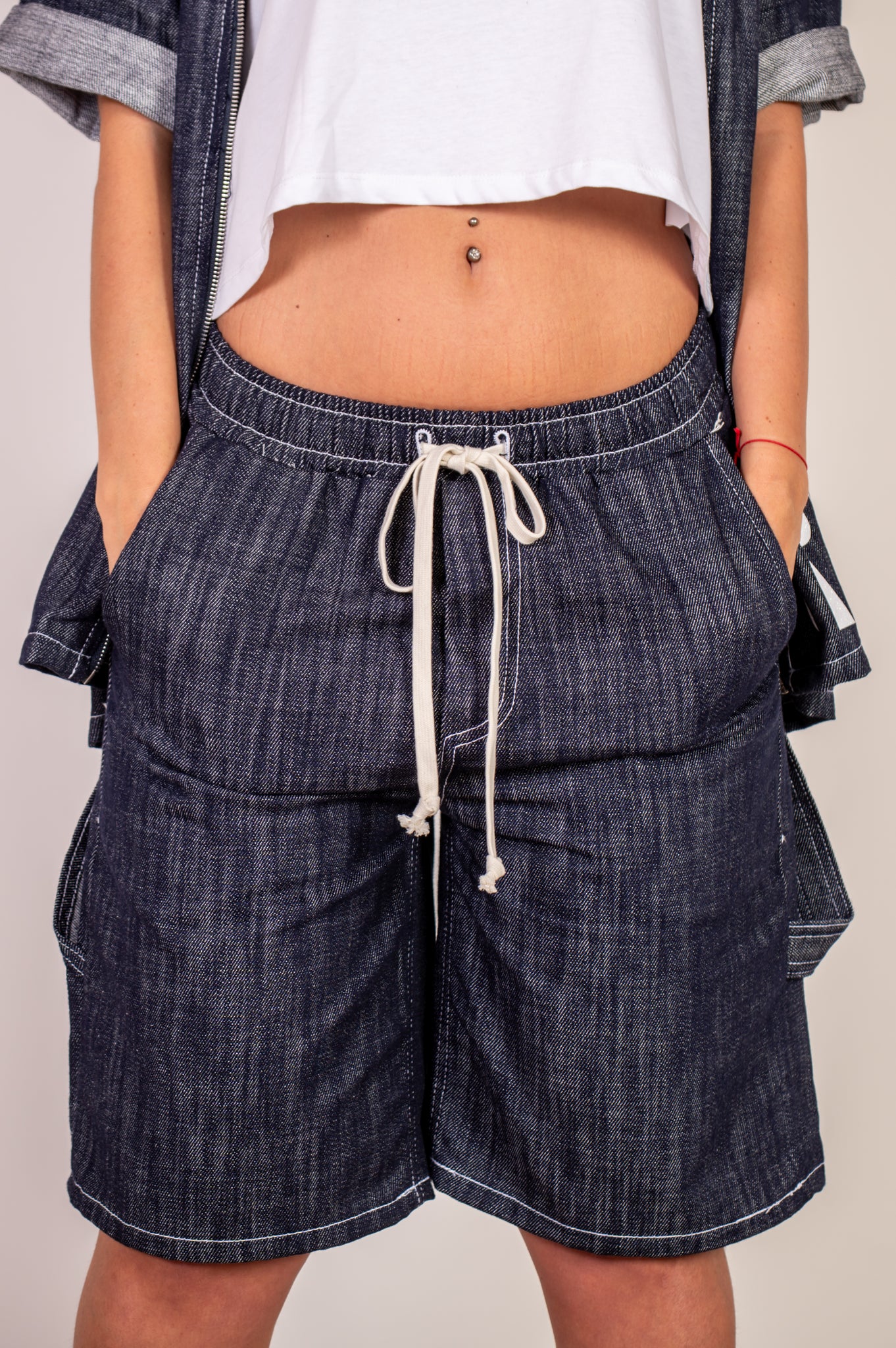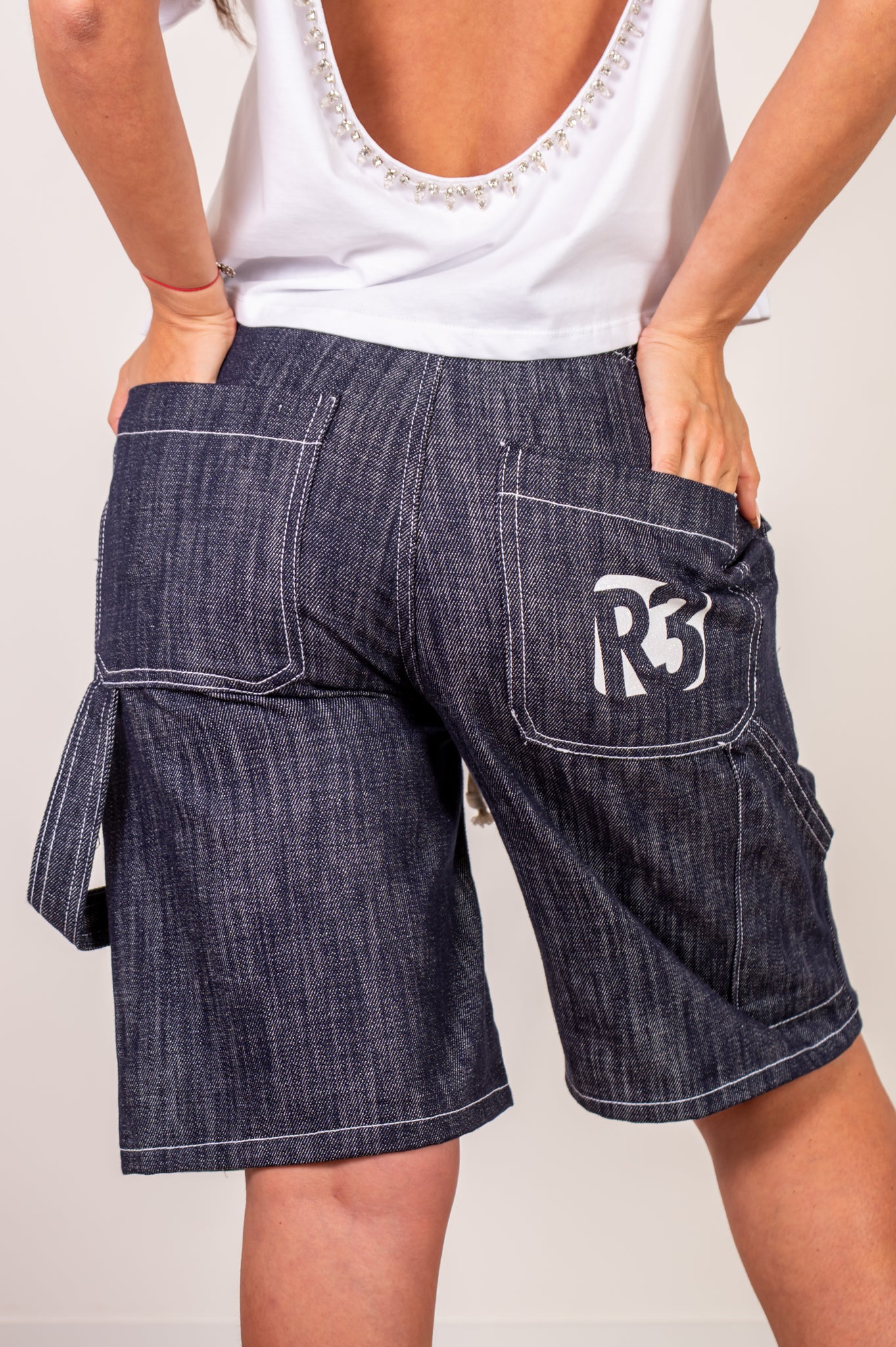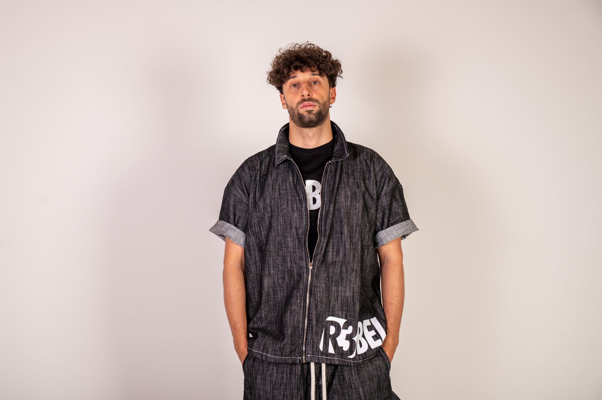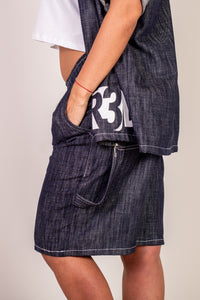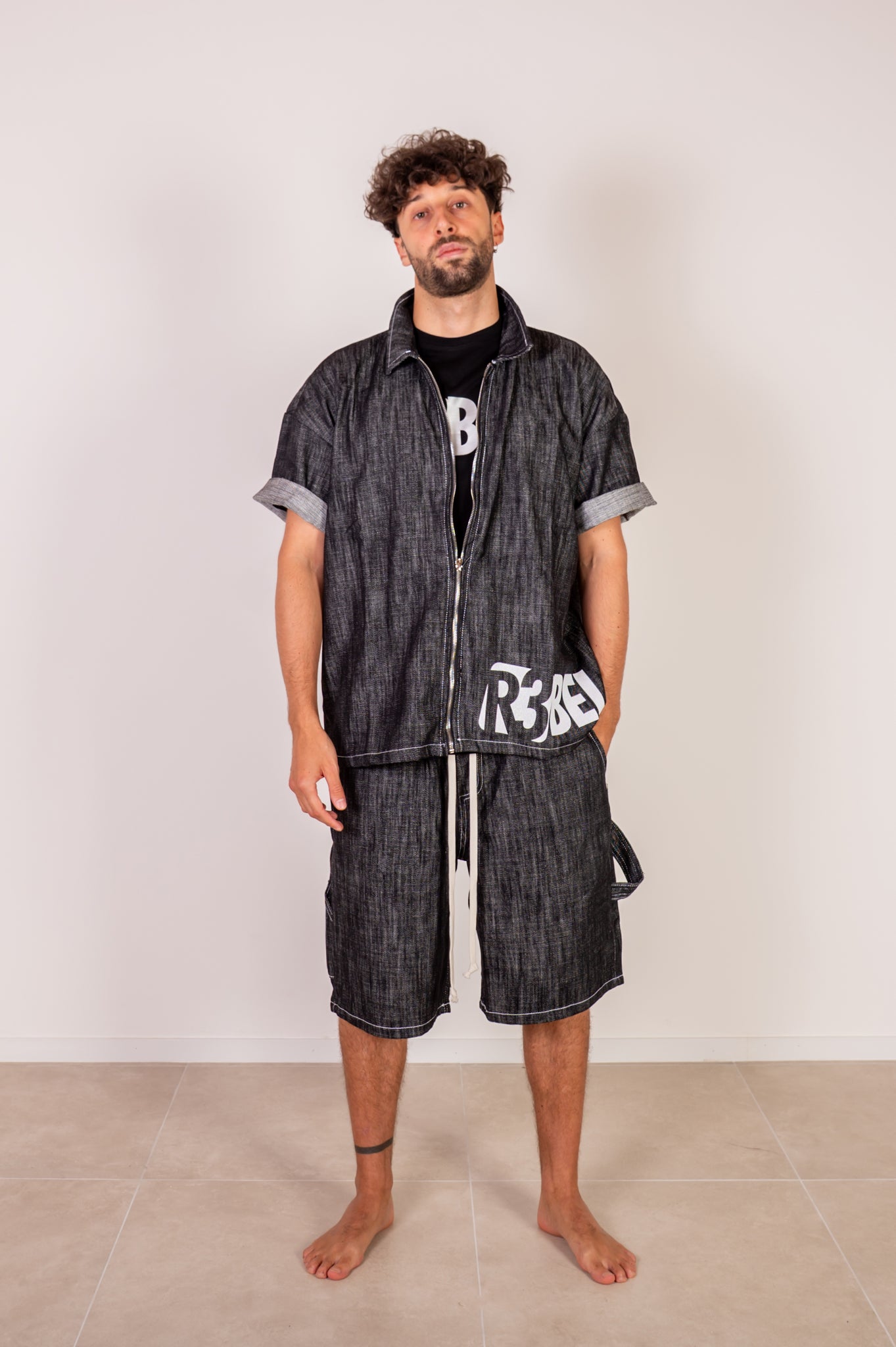 Set composto da una giacca con zip e logo R3bel bianco con dettagli brillanti, abbinata a un bermuda street in denim. Perfetto per chi si allena e si muove con stile anche fuori dalla palestra.