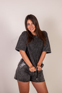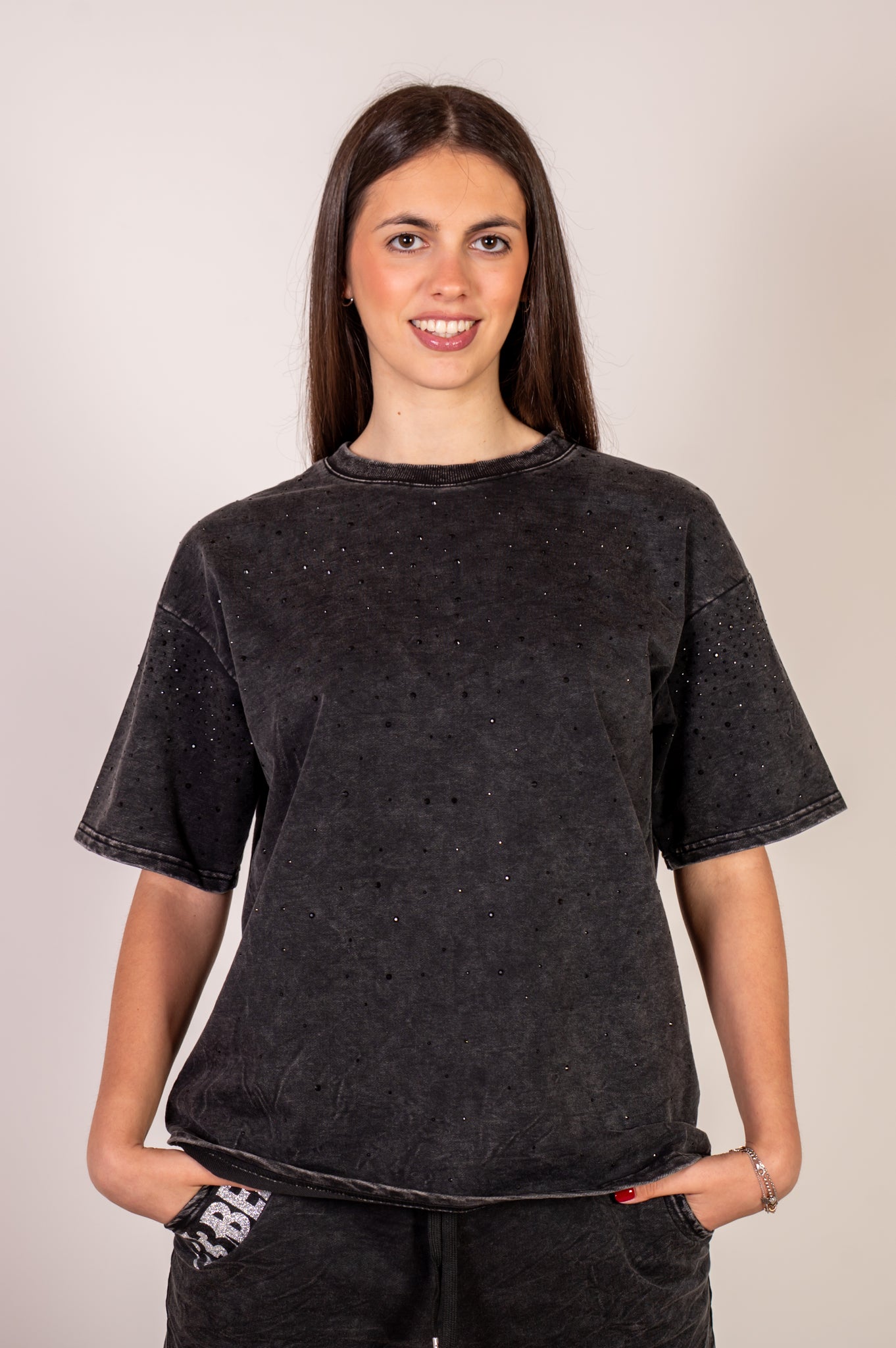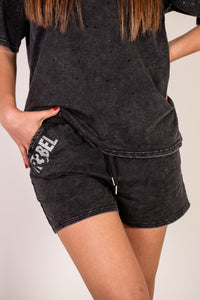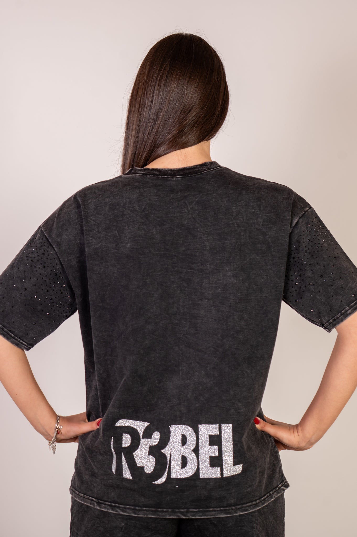 Il completo R3bel Strass è pensato per farsi notare. Composto da una t-shirt decorata con strass sul davanti e logo R3bel brillante sul retro, unisce attitudine sportiva e tocco glam. Lo shorts coordinato aggiunge comfort e stile, con il logo R3bel in strass su una delle tasche. Un outfit perfetto per allenarsi, uscire o semplicemente brillare.