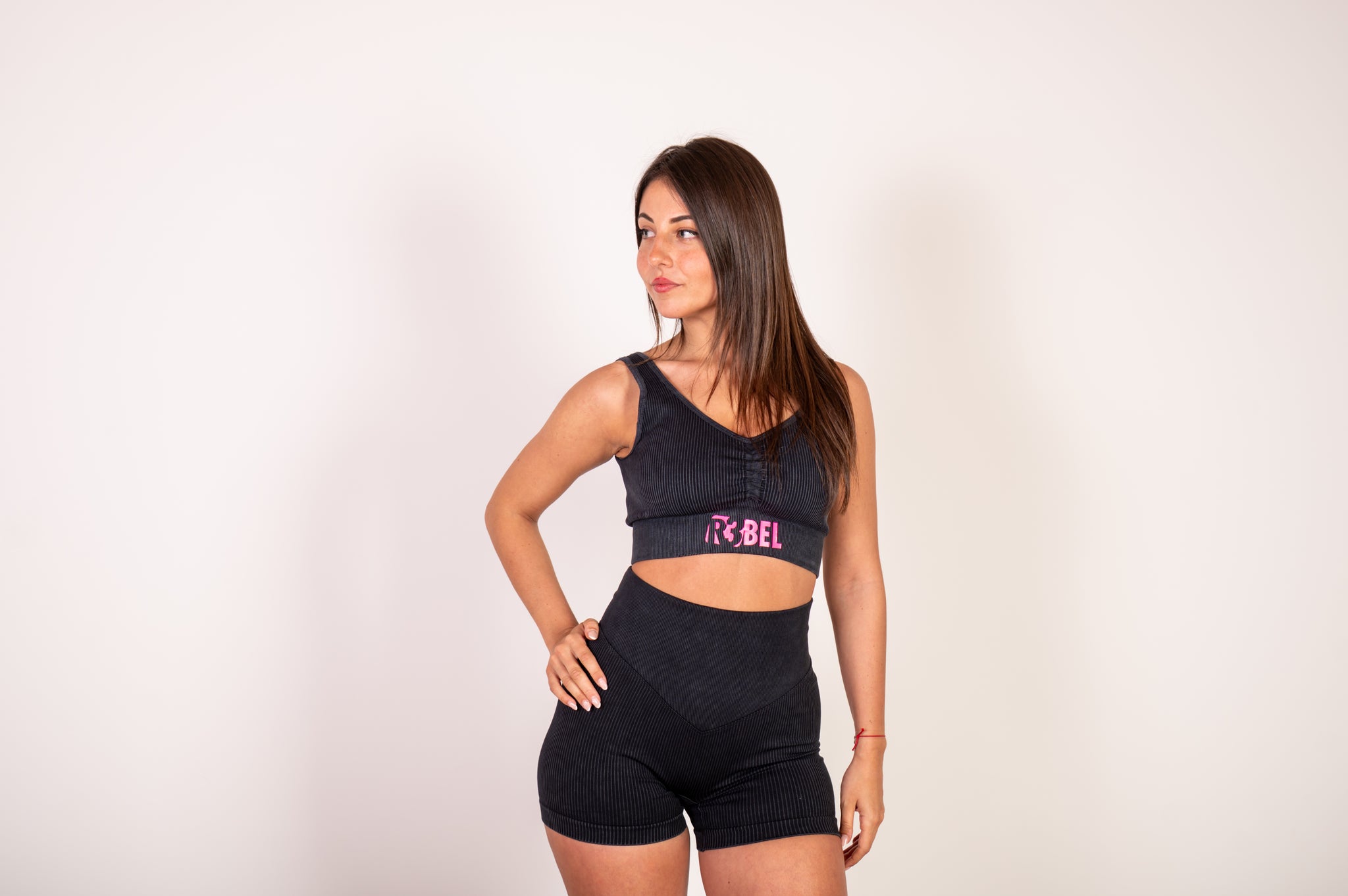 Il nuovo completo tecnico R3bel è progettato per accompagnarti durante allenamenti intensi con totale libertà di movimento. Composto da uno short pump-up che valorizza la figura e da un crop-top smanicato aderente, questo set offre una vestibilità perfetta e supporto ideale per ogni tipo di routine. Pensato per chi si allena con grinta, senza rinunciare allo stile.