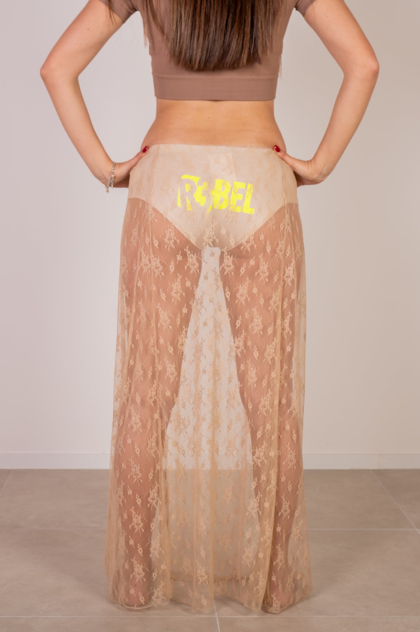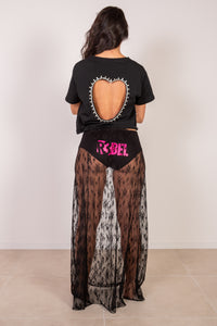 Questa gonna è stata pensata per accompagnarti con fluidità e grinta nelle tue giornate più attive. Realizzata in pizzo morbido ed elastico, presenta un design con micro short interno integrato, ideale per allenarsi, ballare o semplicemente muoversi in libertà senza rinunciare allo stile. Sul retro dello short, la stampa R3bel aggiunge quel dettaglio distintivo che richiama l’essenza del brand. È un capo fresco, leggero e funzionale, adatto a molteplici situazioni quotidiane.